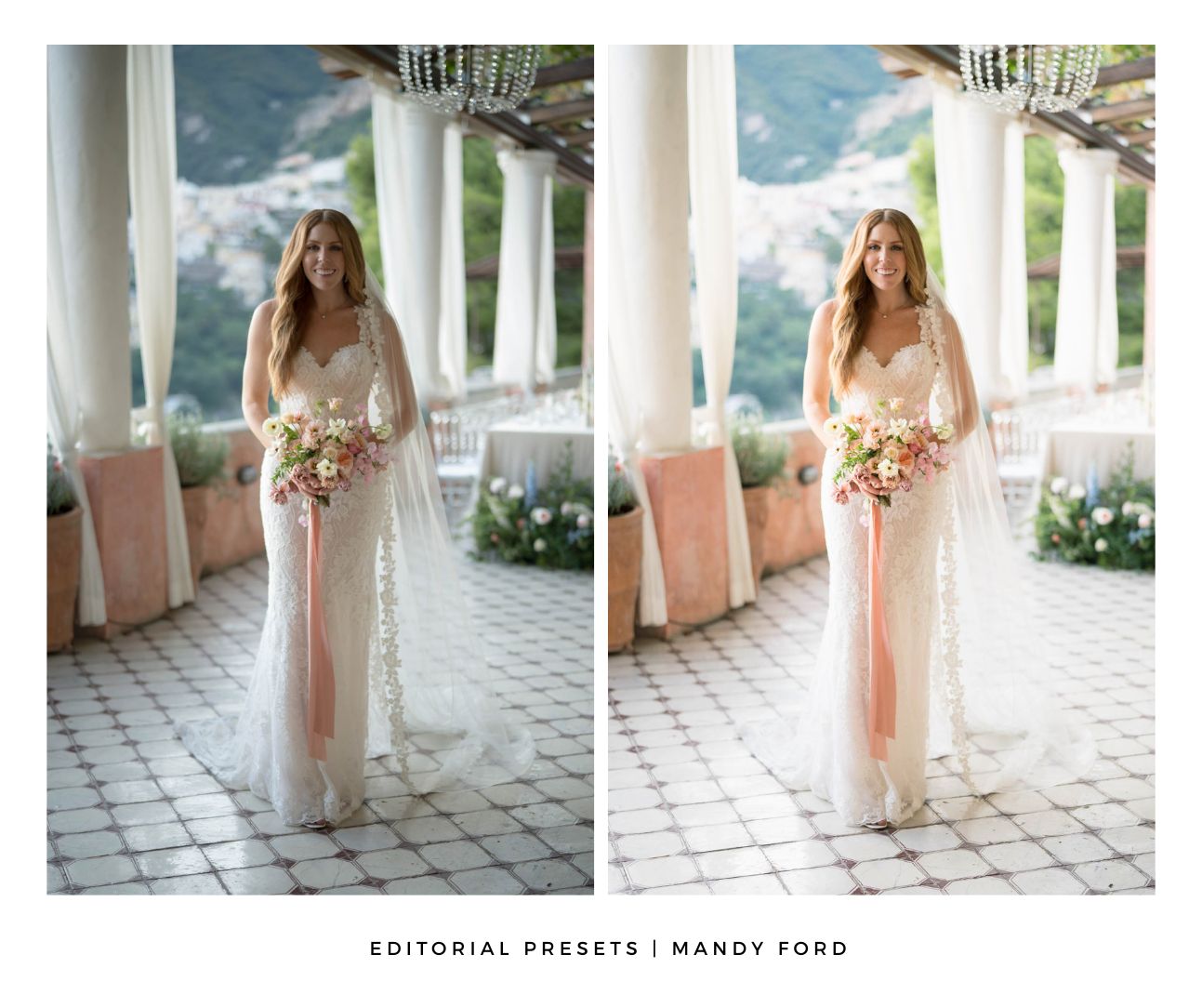 Designed to encompass typical modifications needed to create stunning edits in various lighting conditions, including mixed lighting, dimly lit bridal suites, and excessively bright or hazy backlighting. Diagnose the light and apply to corresponding preset to spend less time experimenting with presets, and more Objective Editing™!